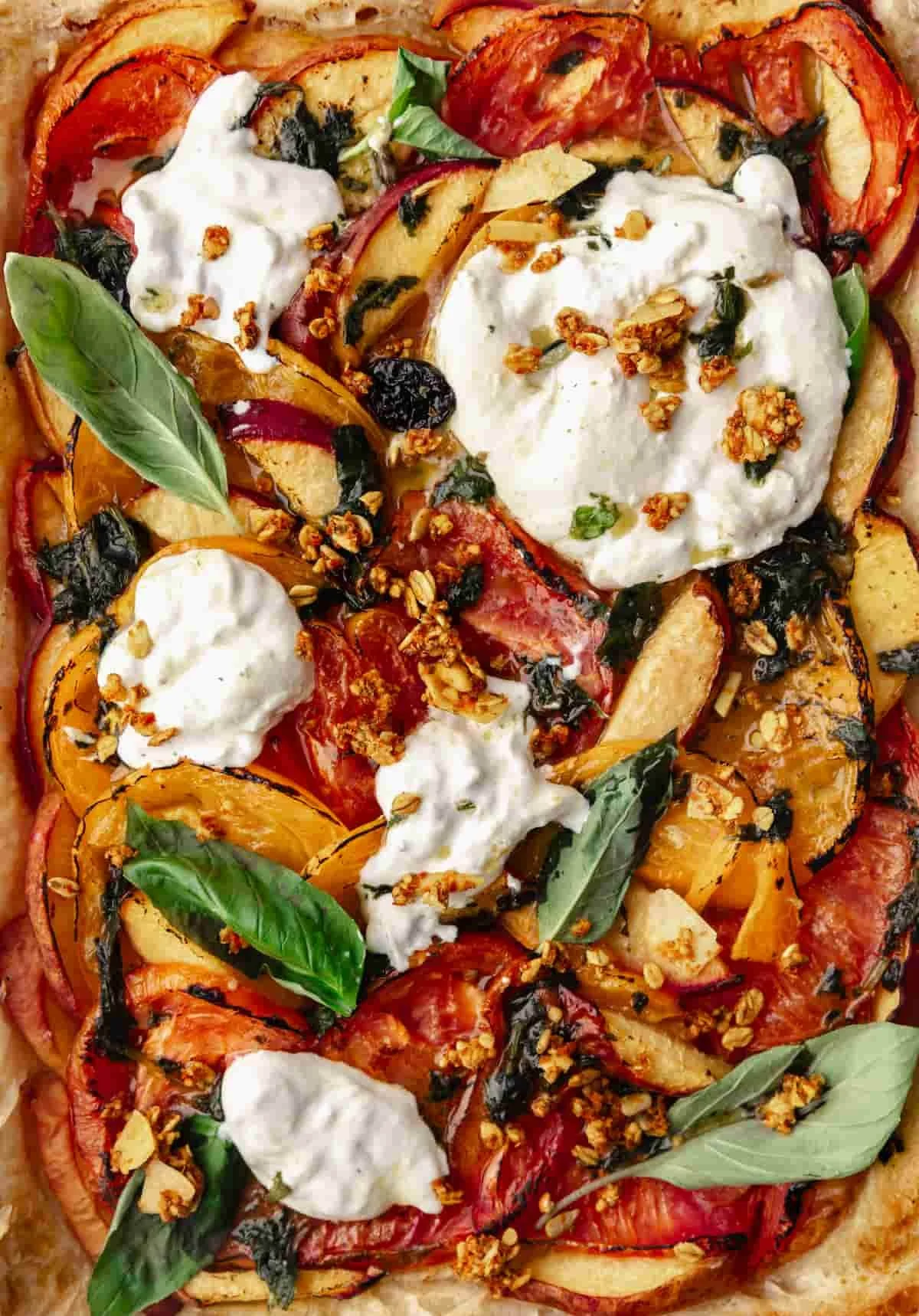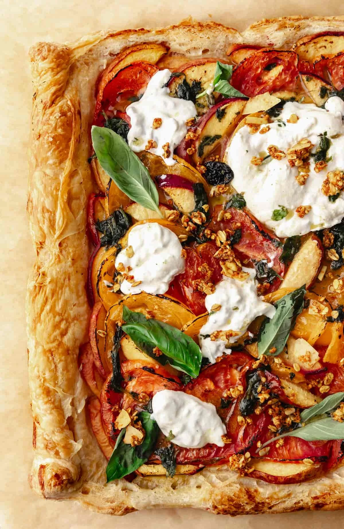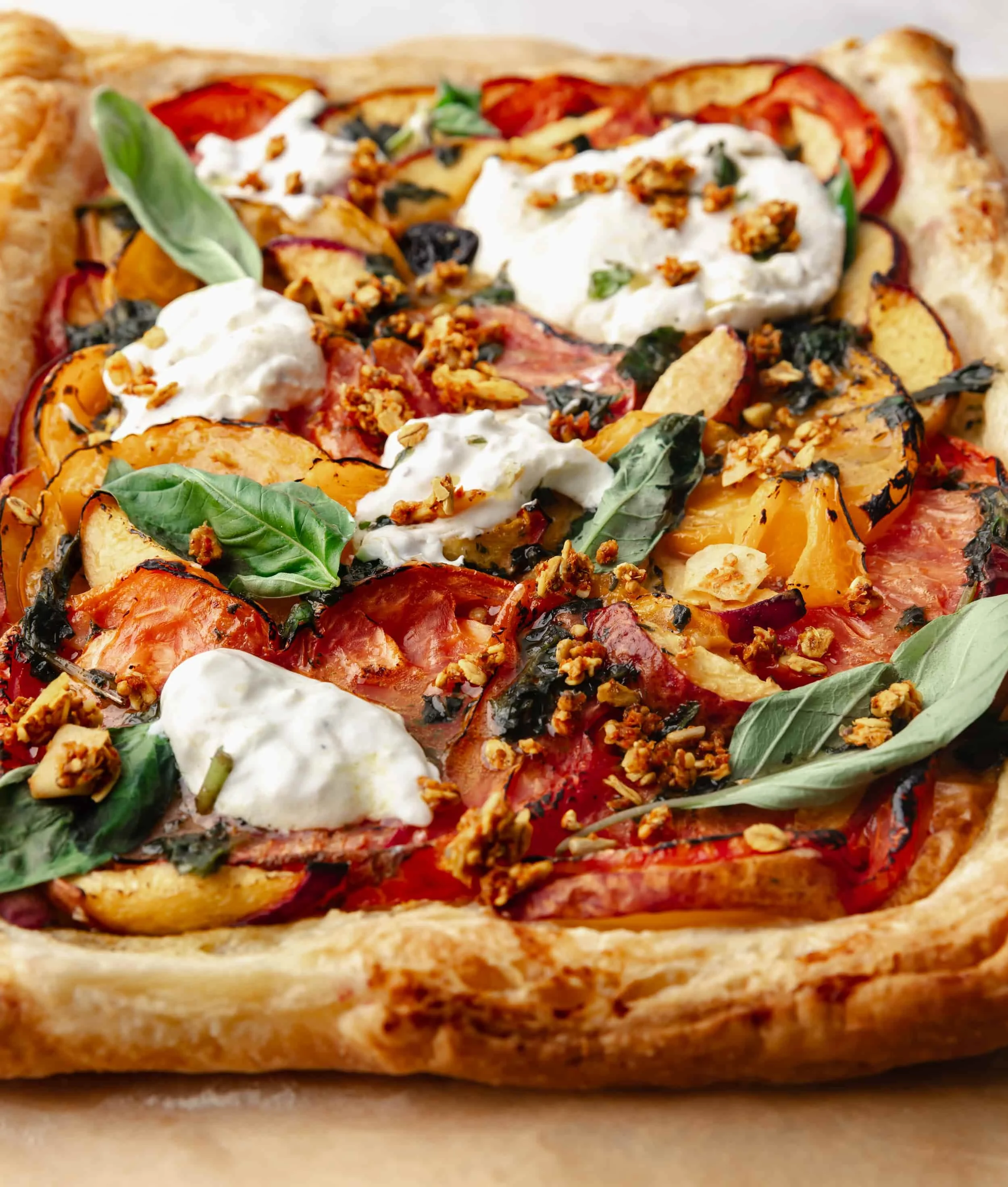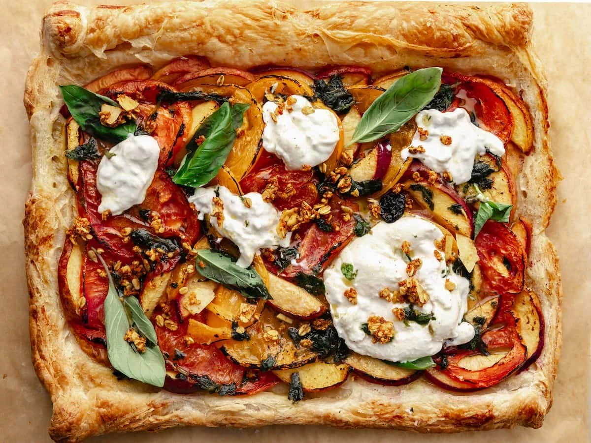 Tomato, Peach and Burrata Puff Pastry Tart