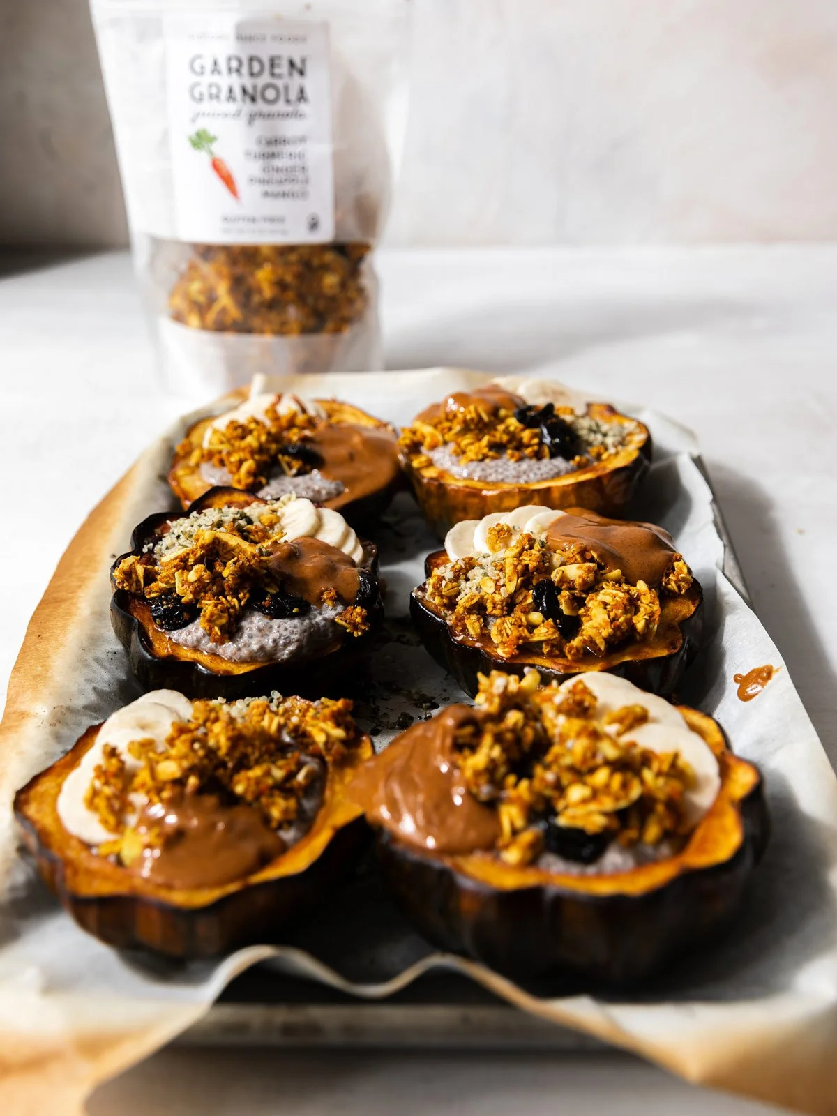 Vegan Acorn Squash Breakfast Bowls with Pumpkin Spice Chia Pudding & Garden Granola